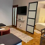 Interbellic Flat Apartamento cuenta con una terraza equipada con climatizador y ordenador personal y TV de pantalla plana con canales vía satélite. Las ventanas insonorizadas y el sofá garantizan una estancia más agradable. El apartamento acoge a los huéspedes en 1 dormitorio. El establecimiento dispone de 1 cuarto de baño con inodoro, bañera y una ducha. Además, hay secador de pelo, artículos de tocador para huéspedes y zapatillas.
